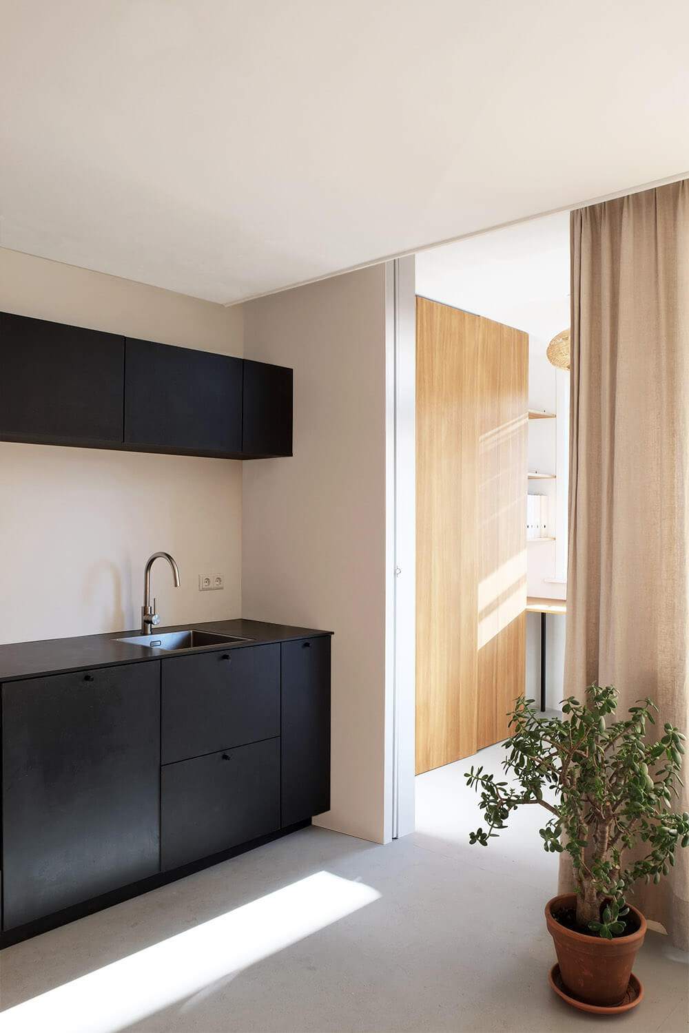 Multiple space-saving solutions combined with a light and warm material palette define the spaciousness of this tiny Amsterdam loft. With the use of 1:1 mockups it was investigated how small footprint living can still feel spacious.